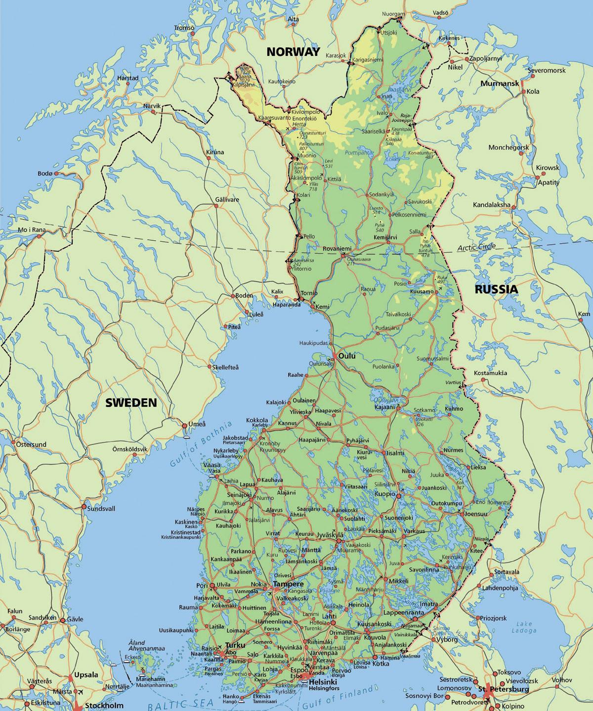 Arctic circle Finland map
